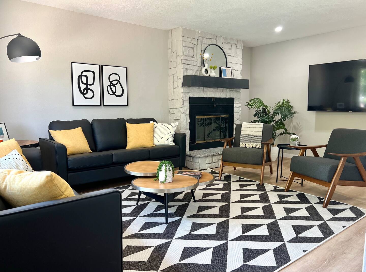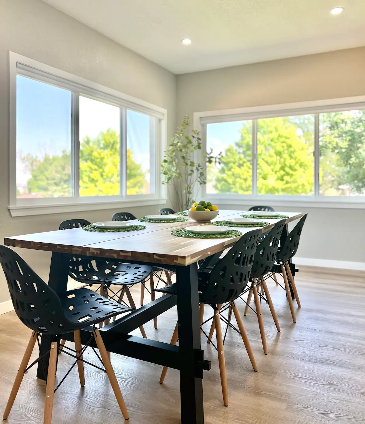 Spacious 2800 sqft fully renovated 4-bed, 3-bath with 2 kitchens & 2 living areas – perfect for large or blended families or groups of co-workers. Oversized 2-car detached garage with Level-2 EV Charger. Large dining room with a stunning view of the city skyline. ROKU TVs in every bedroom as well as both living areas. Large 6-ft fenced yard, furnished patio, great area for kids & dogs.